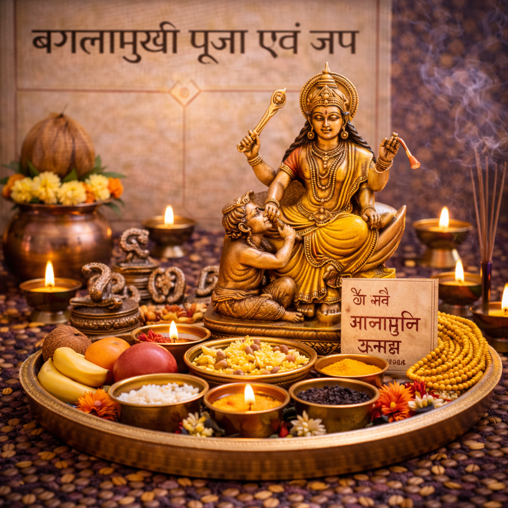 Court case, enemies aur decision control ke liye Maa Baglamukhi ki shakti se labh prapt karne ke liye pooja.