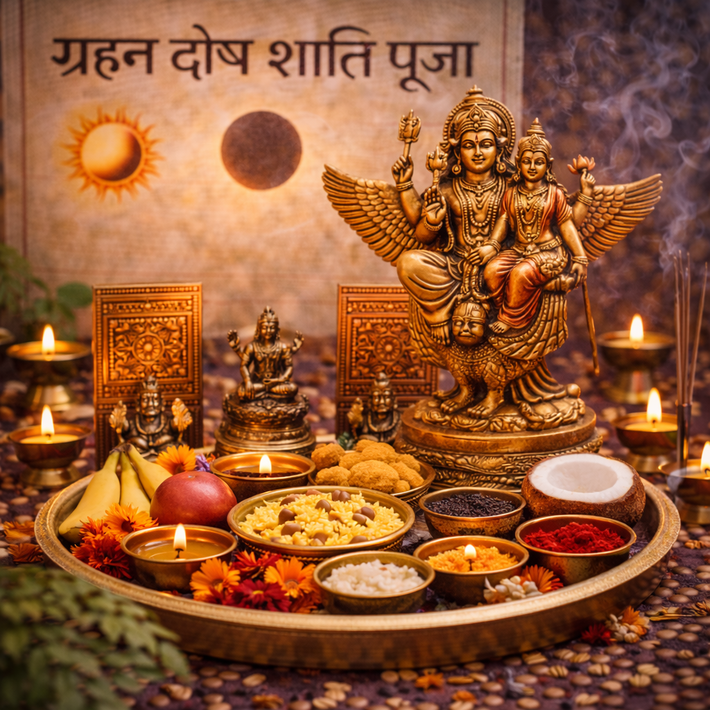 Surya ya Chandra grahan dosh ke prabhav se hone wali mental aur career samasyaon ke liye shanti pooja.