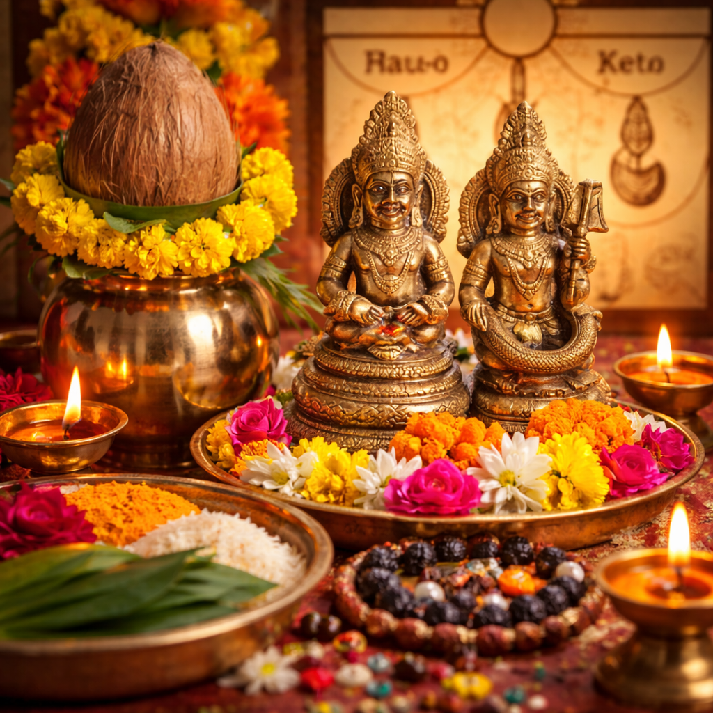 Rahu aur Ketu ke asar se aane wali confusion, rukawat aur achanak problems ko shant karne ke liye pooja.
