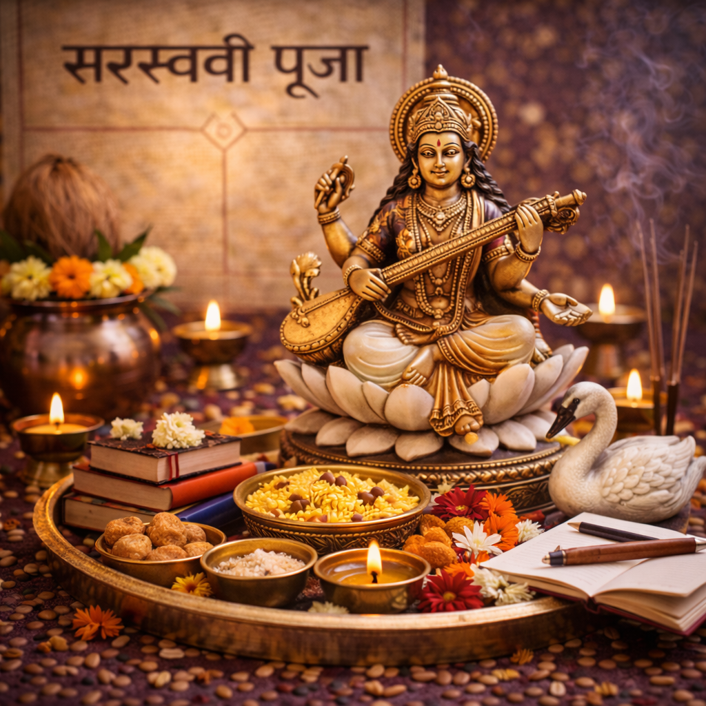 Education, concentration aur learning power ko majboot banane ke liye Maa Saraswati ki pooja.