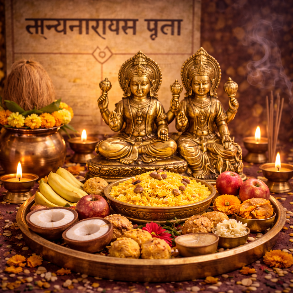 Ghar me sukh-samriddhi, peace aur bhagwan ki kripa banaye rakhne ke liye Satyanarayan pooja.