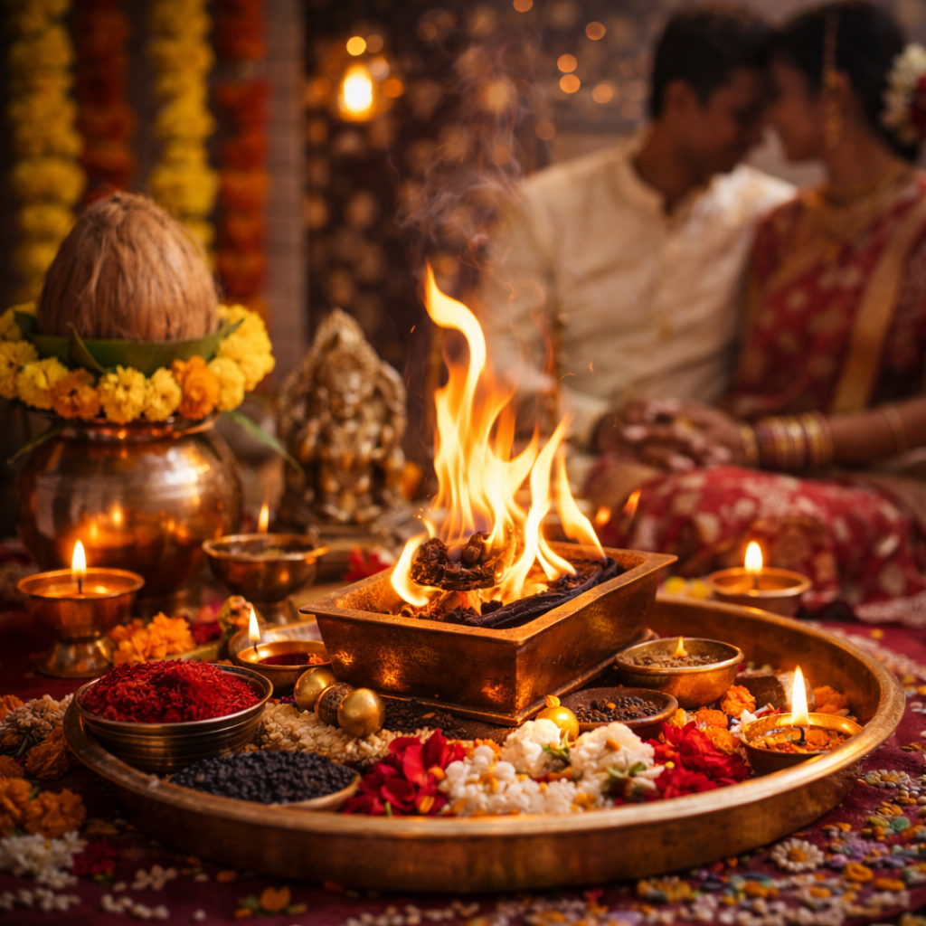 Shadi ke shubh avsar par mangal shuruaat, sukh-samriddhi aur parivaarik ashirwad ke liye vishesh vedic pooja.