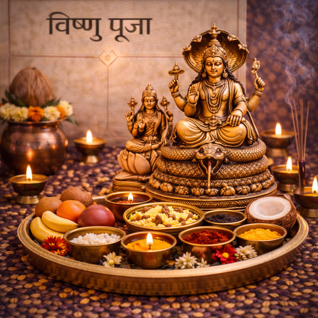 Jeevan me stability, dharmic balance aur family peace badhane ke liye Bhagwan Vishnu ki pooja.