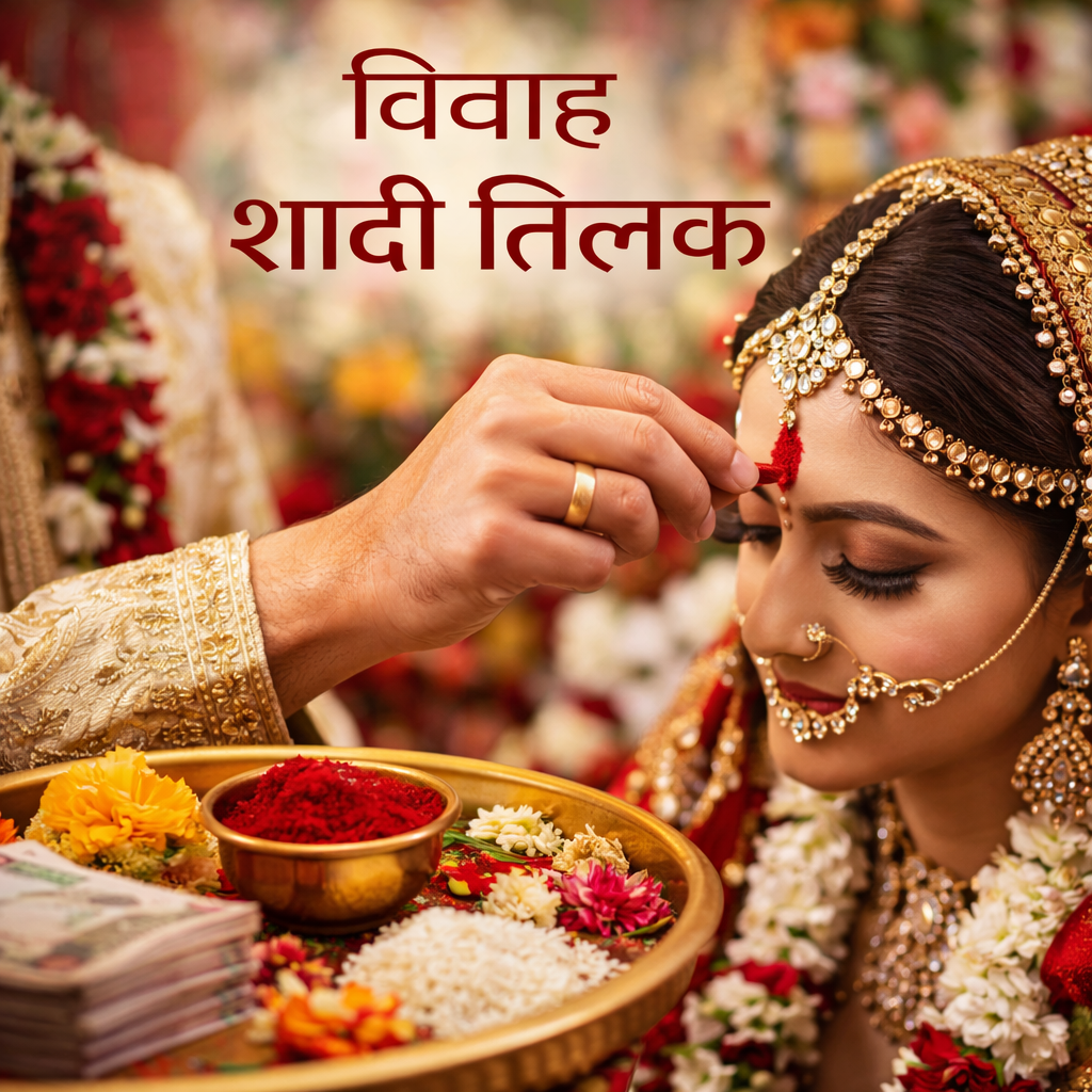 Shadi tilak ke shubh avsar par samman, shubh sankalp aur vivah ke mangal yog ke liye pooja.